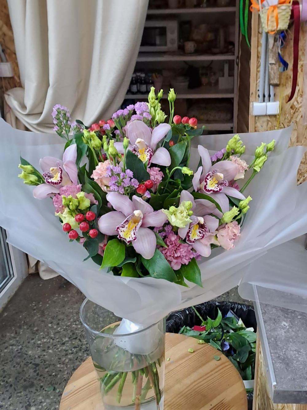 скидка 5 % при оформлении заказа за сутки до доставки. Все букеты собираются вручную не позднее чем за 3 часа до отправки — только свежие цветы!