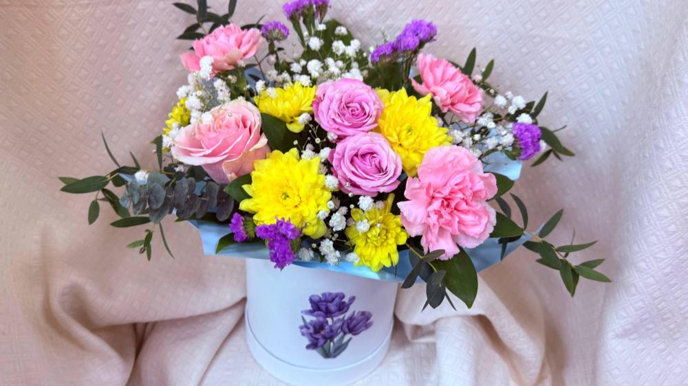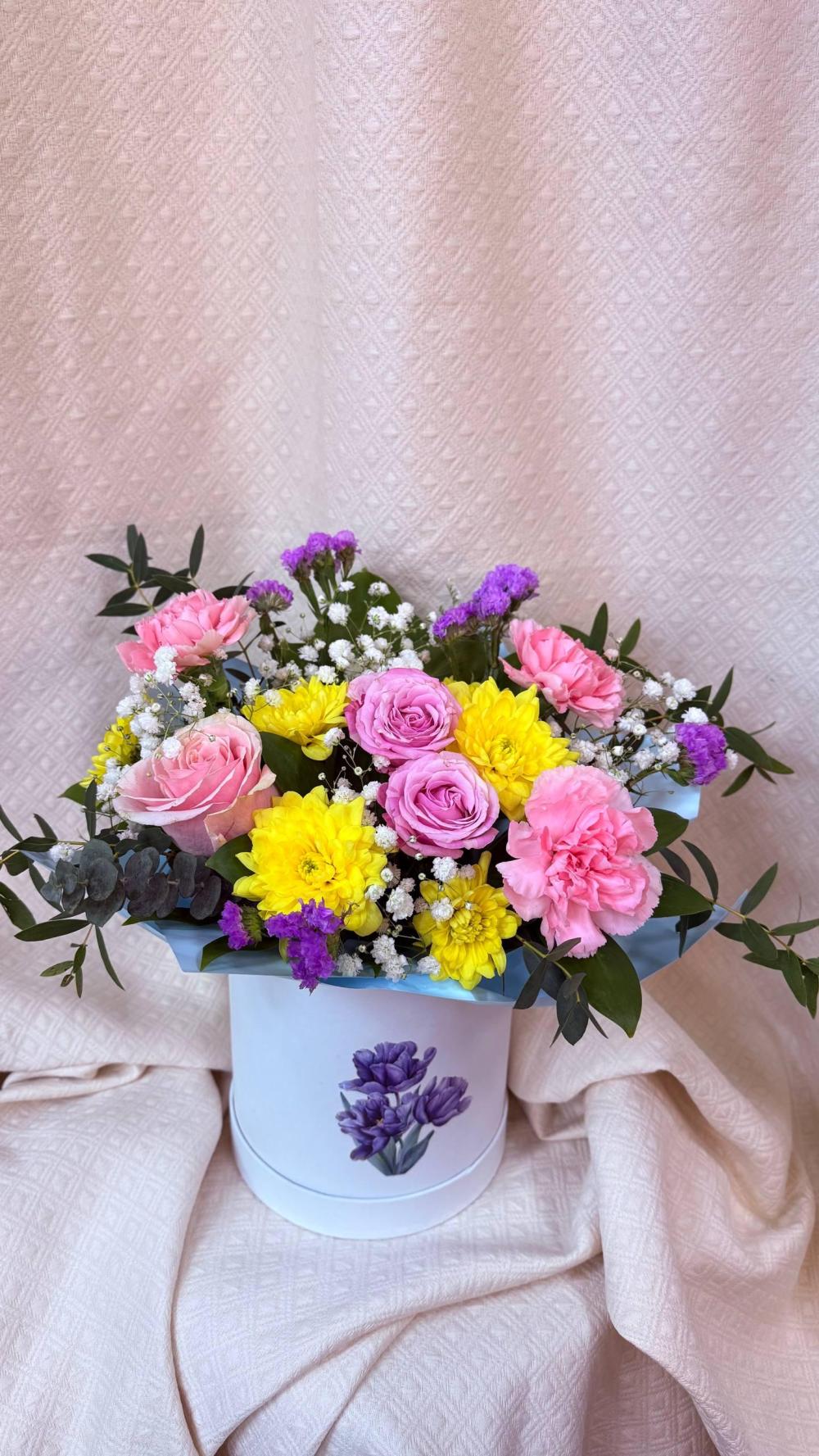 Шляпная коробка с цветами "Весна для любимой"