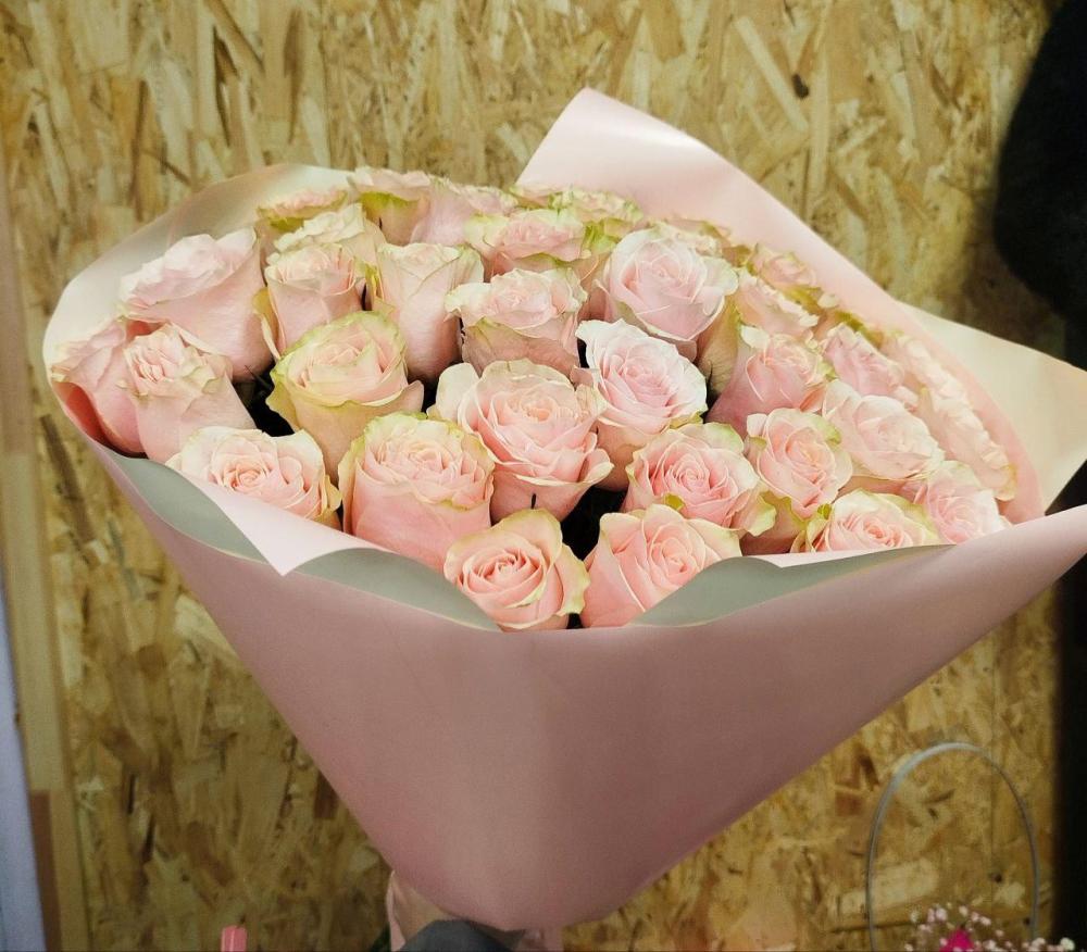 Этот букет из свежих, нежно-розовых роз – воплощение элегантности и тонкого вкуса. Каждая роза, словно застенчивая улыбка, готова расцвести для вашего особенного человека.